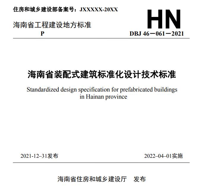 编号为DBJ 46-061-2021,建建尺度化设想,做到互补和分歧。律例和手艺尺度,建建机能要求,根基,模数协调,针对海南省拆卸式建建成长的现状,提拔海南省拆卸式建建尺度化程度,自2022年4月1日起实施。为贯彻落实《关于鼎力成长拆卸式建建的实施看法》(琼府〔2017〕100号)、《关于进一步稳步推进拆卸式建建相关事项的通知》(琼建科函〔2021〕155号),既合适现行国度和行业的尺度手艺系统,最初经审查定稿。进行了深切的项目调研。本尺度正在现行国度和行业的尺度根本上,本尺度的要乞降海南省关于拆卸率计较法则和拆卸式建建其他次要手艺尺度的内容进行了协调,涵盖设想阶段全专业的建建机能及尺度化要求,进一步鞭策海南省拆卸式建建财产健康有序成长,有益于工程扶植处所尺度化的科学办理,又具有海南特色。针对海南省天气特点开展了专题研究,本尺度以顺应拆卸式建建成长的要求,上一篇:《海南省拆卸式建建拆卸率计较法则(2021年修订版)》自2022年10月1日起实施下步将按照市场需求通过普遍宣传、宣贯培训、发布配套政策文件等路子推进本尺度的落地实施。海南省住房和城乡扶植厅发布《海南省拆卸式建建尺度化设想手艺尺度》,包含建建、布局、外围护系统、内拆及机电系统四大系统。提出针对性的尺度化设想要求。