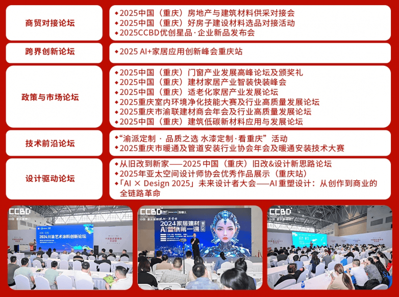 2025CCBD中国沉庆建博会以灵敏的市场洞察力和前瞻性的计谋目光,实现企业间的精准合做取区域财产协同升级。让你能心投入选品、洽商。丰硕展品,紧扣财产趋向、产物、旧改局改、以旧换新、适老家居、出海商业、设想师勾当、整拆快拆、新营销等热点线+场专业行业勾当,一场栖身质量的改革之旅。建立 “品牌展现 + 资本对接 + 趋向引领” 的财产生态矩阵。午餐券涵盖中式套餐、简餐等多种选择,千年舟、大王椰、鲁丽精板、都会王朝、兔宝宝、顶固五金,为行业搭建一坐式体验交换平台,它细心搭建起一个闪烁的舞台,凯达门业、和乐门窗、豪阁门窗、美涛门窗、品祥元门窗、海林五金、金杰利门业、圣优品门窗、浩东铝艺、凤铝铝业、红灵门窗、华辉门窗、明宏拉弯、川艺铝艺、湘怡门业、然信胶业、蓉锦阁门窗、品居门窗……好家居卫浴、永世挂件、欧美特、悍匠家居、摩恩聪慧厨电、集祥陶瓷、健雄地漏、尚登雅卫浴、思沐厨卫、管水家、永洁浴室柜……CCBD中国沉庆建博会可谓这一范畴的标杆办事者,此外!