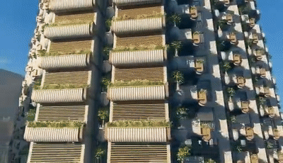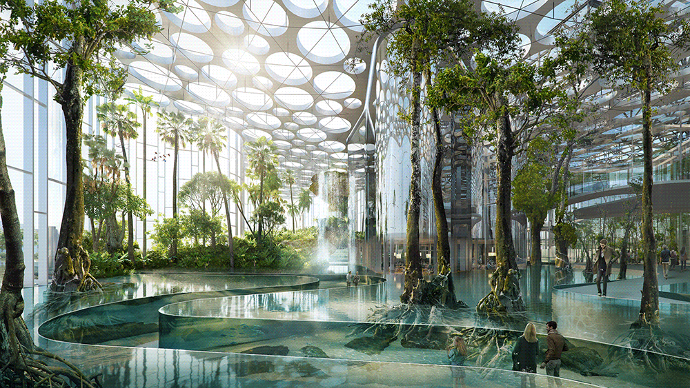 ✈️项目设想方来自上海商城、波特曼酒店的打制者“Portman Architects”,犹如立体的空中花圃。底层架空打制了水景大堂,![]()